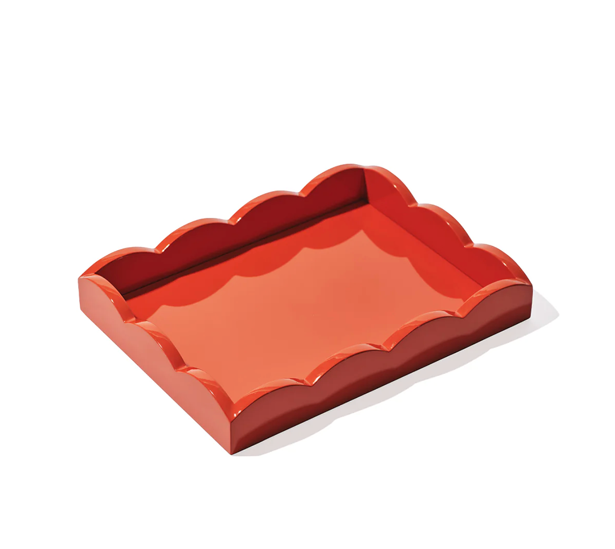 Serving tray with scalloped edges and a red gloss finish