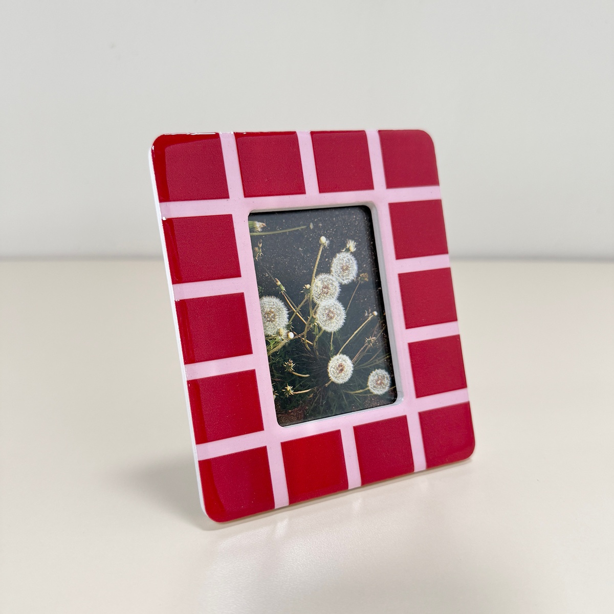 Small red & pink ceramic picture frame w/ photo of dandelions . IMAGE IS CLEARED FOR USE Photo must be returned. ** Please note high repla...